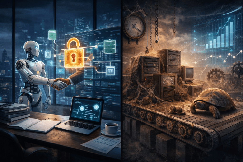 So when a business locks itself into a platform that can’t evolve quickly—because of vendor roadmap limits, technical debt, or contract lock-in—it doesn’t just miss AI upside.